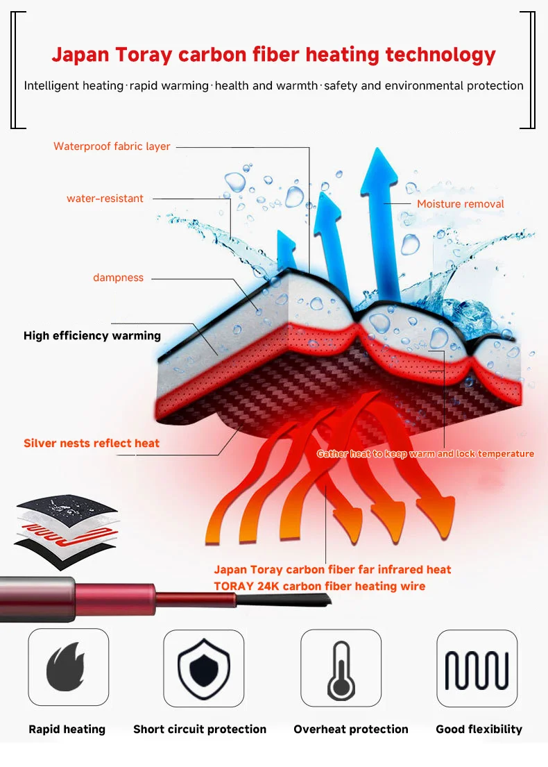 1.Three temperature control/infrared heating/cold protection and warmth;