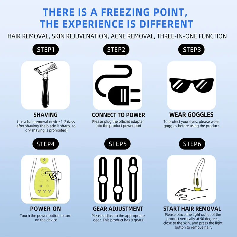 Use a hair removal device 1-2 daysafter shaving, (custom skin-friendly IPL treatments) The blade is sharp, sodry shaving is prohibited.