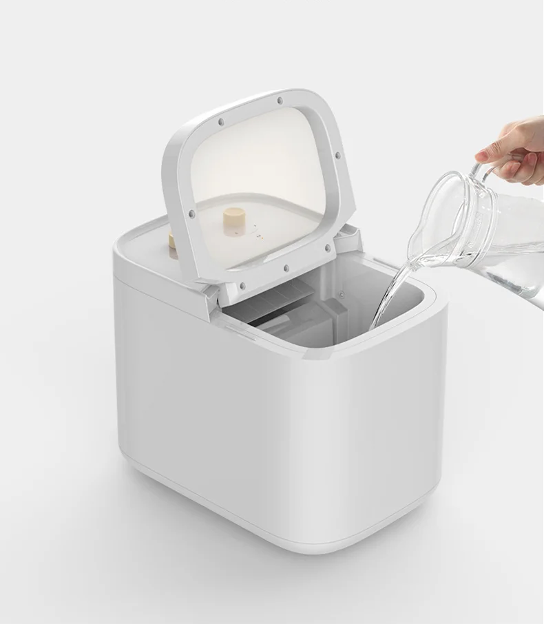 With user-friendly controls, operating our electric ice maker is a breeze. (mini small capacity Refrigerator device) Simply fill the reservoir with water and press start. Our counter top ice maker is equipped with helpful indicators that will remind you to empty the basket when it's full and prompt you to add water when the ice machine is running low.