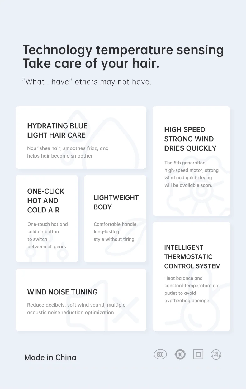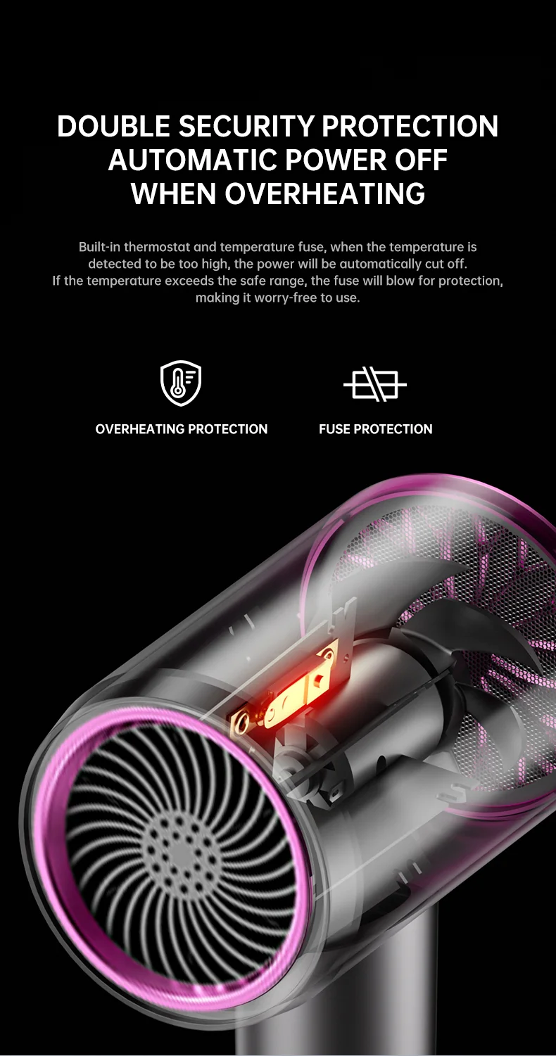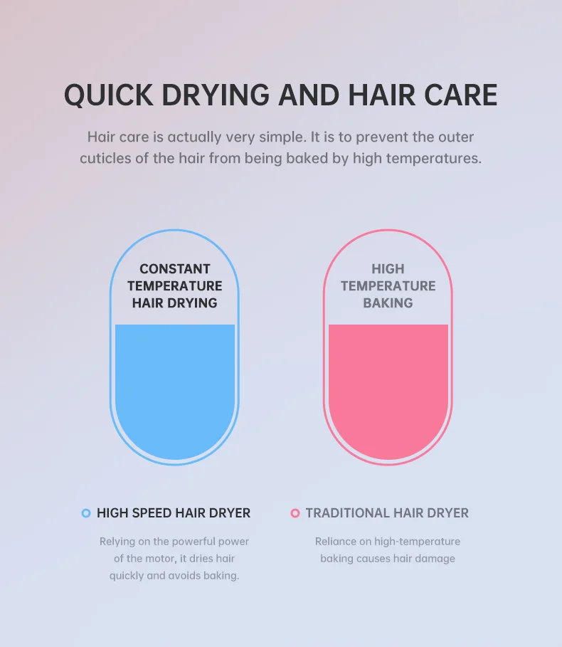 The blow dryer generates millions of negative ions during use, which penetrate to the hair roots to improve hair moisture and scale health. (baby skin dryer wholesales china) This effectively eliminates static electricity and maintains the hair's silky smoothness and frizz-free quality, enhancing the natural lustre